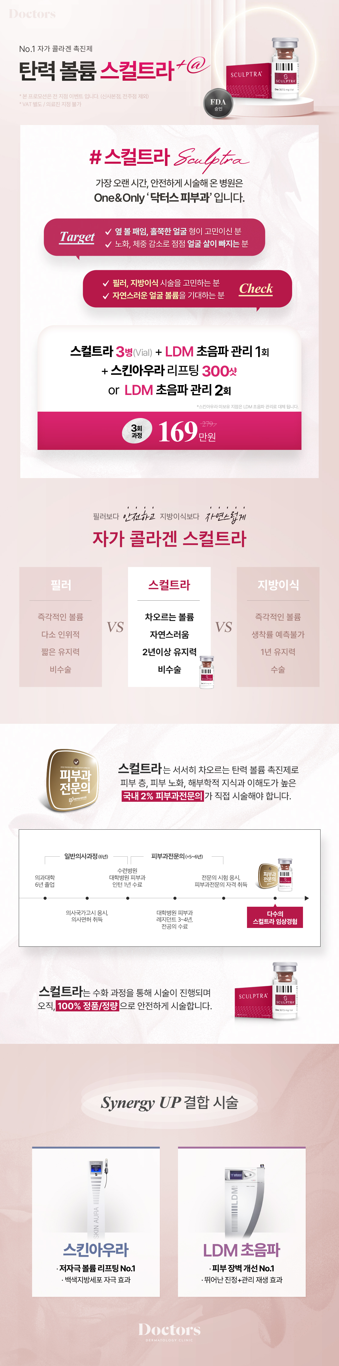 스컬트라 3병(Vial) + LDM 초음파 관리 1회 + 스킨아우라 리프팅 300샷 or LDM 초음파 관리 2회